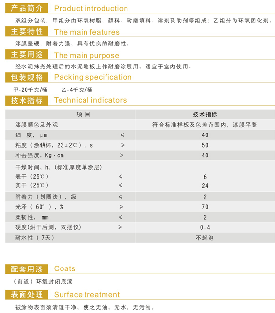 各色環(huán)氧耐磨地板漆(雙組份)